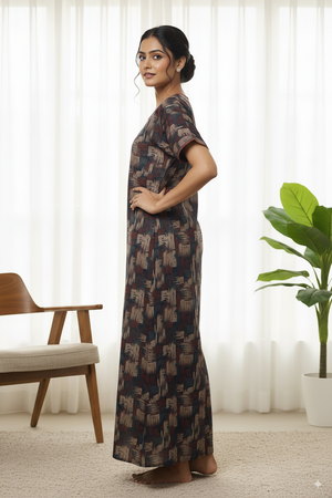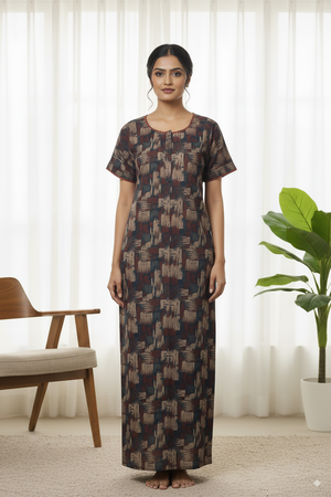Alpine Abstract Print Silver Cotton Nighty – Soft & Stylish Sleepwear