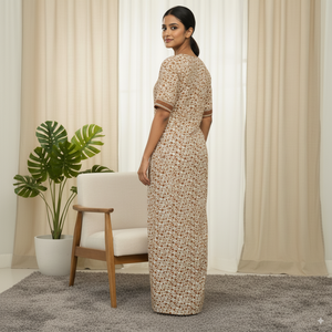 Jaipur Cotton Printed Nighty – Beige & Brown Floral