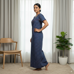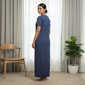 Premium Cotton Nighty – Navy Blue Geometric Print
